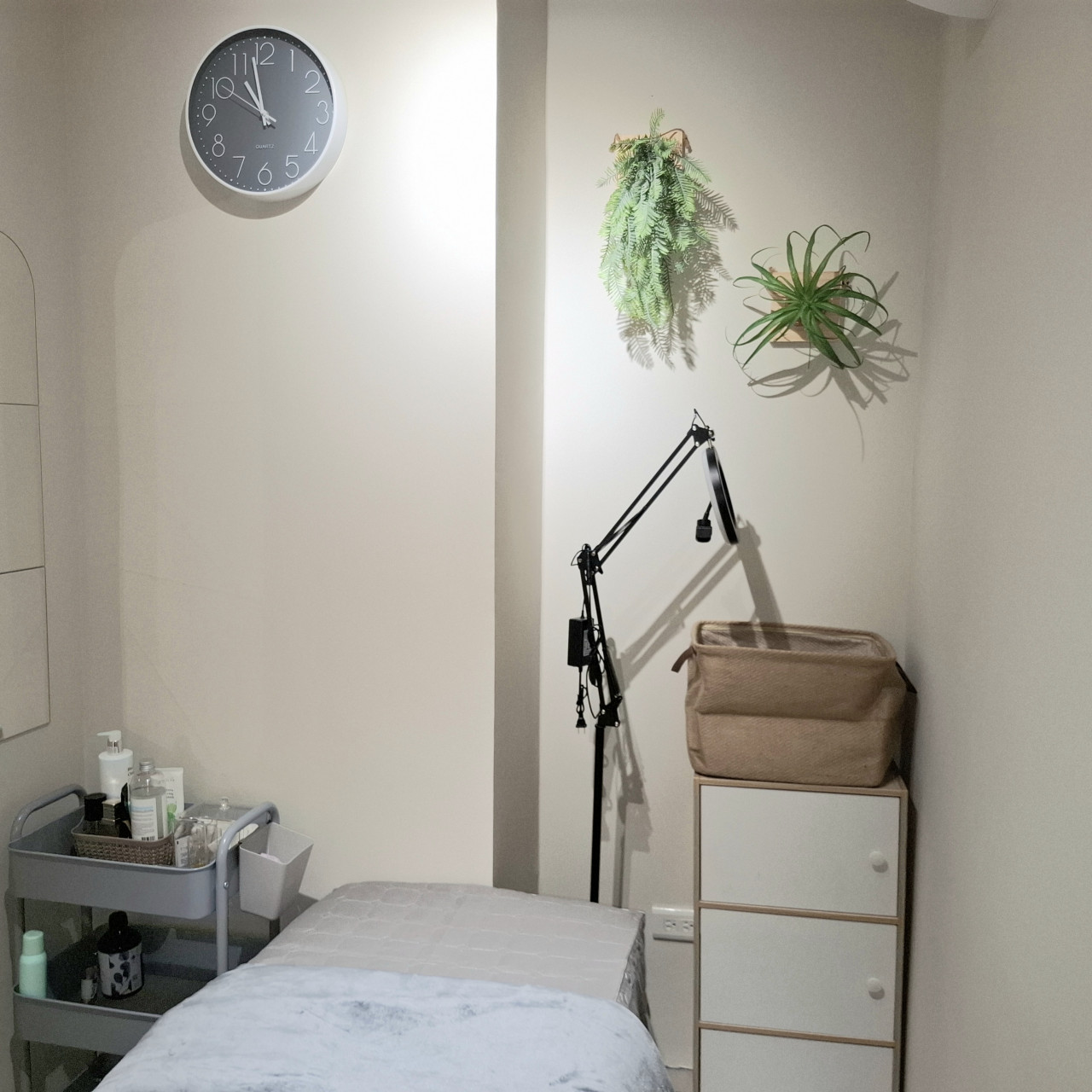 可調美容床、可調美容椅、毛毯、三色調光工作燈、工作推車、置物籃、置物櫃、延長線、半身鏡、一次性床單、變頻空調、100M光纖網路。
